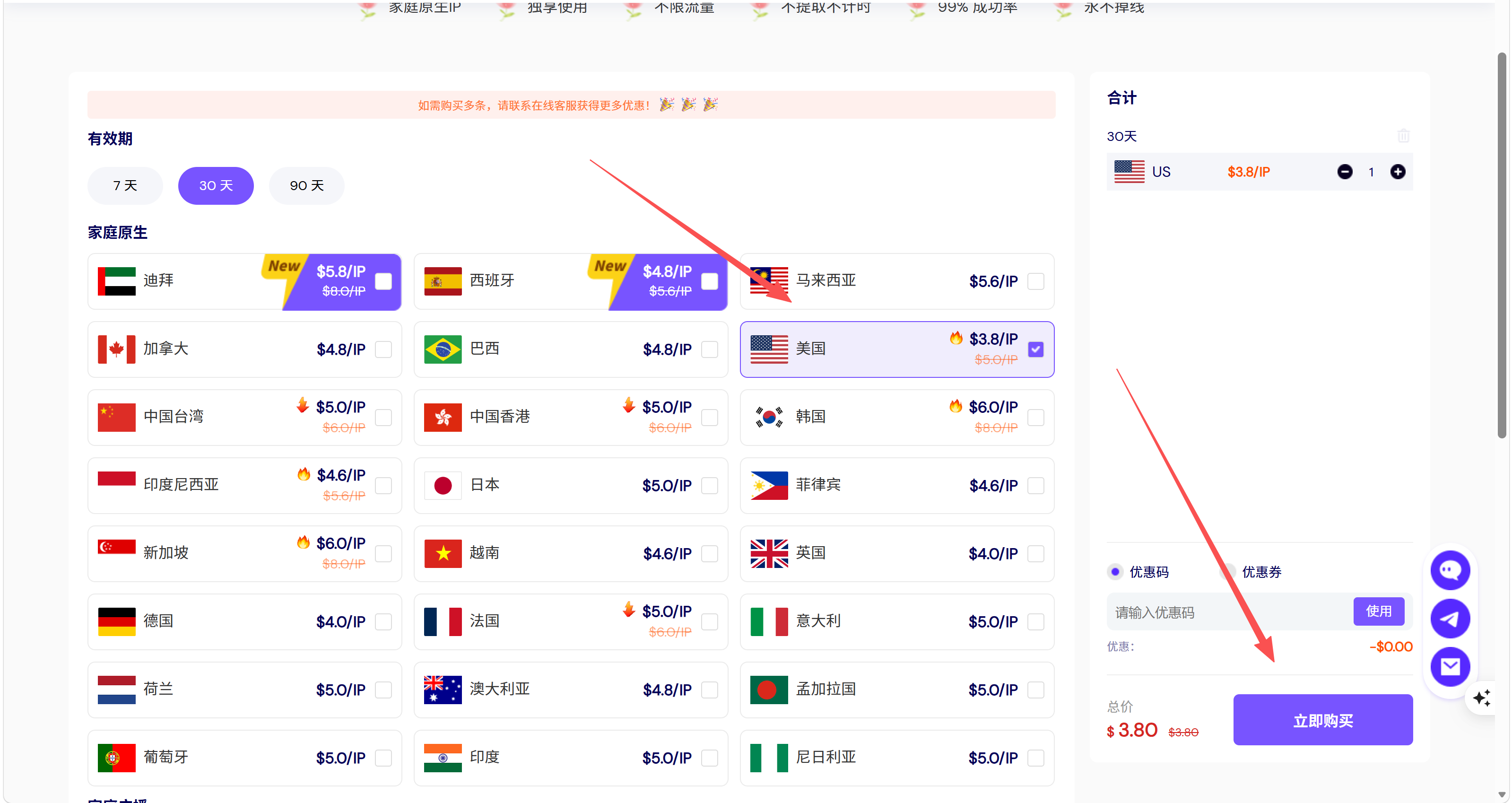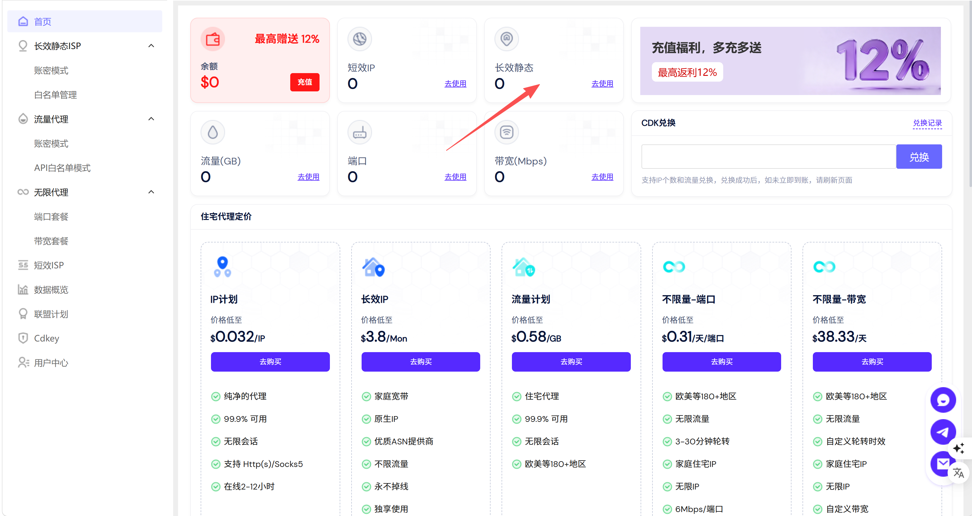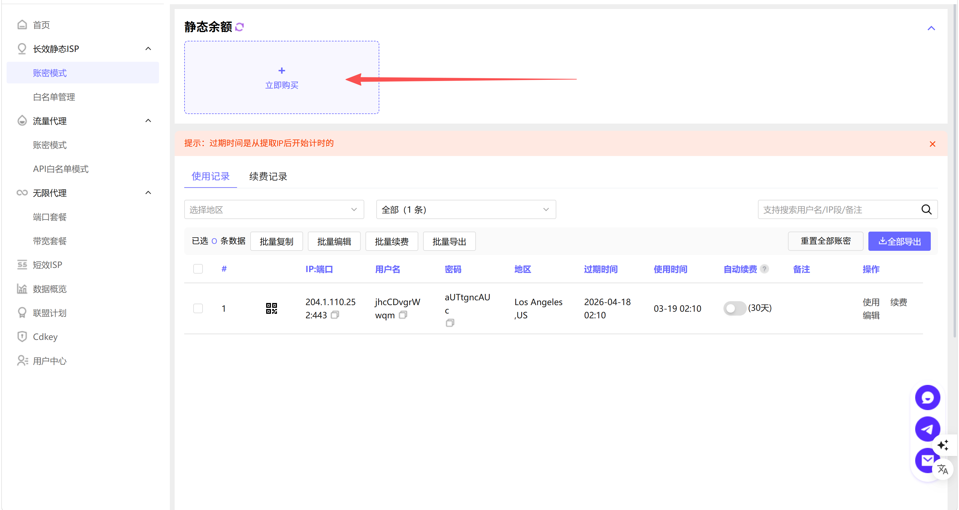 长效住宅IP一月在26左右,注册登录就不说明了,流程看图
