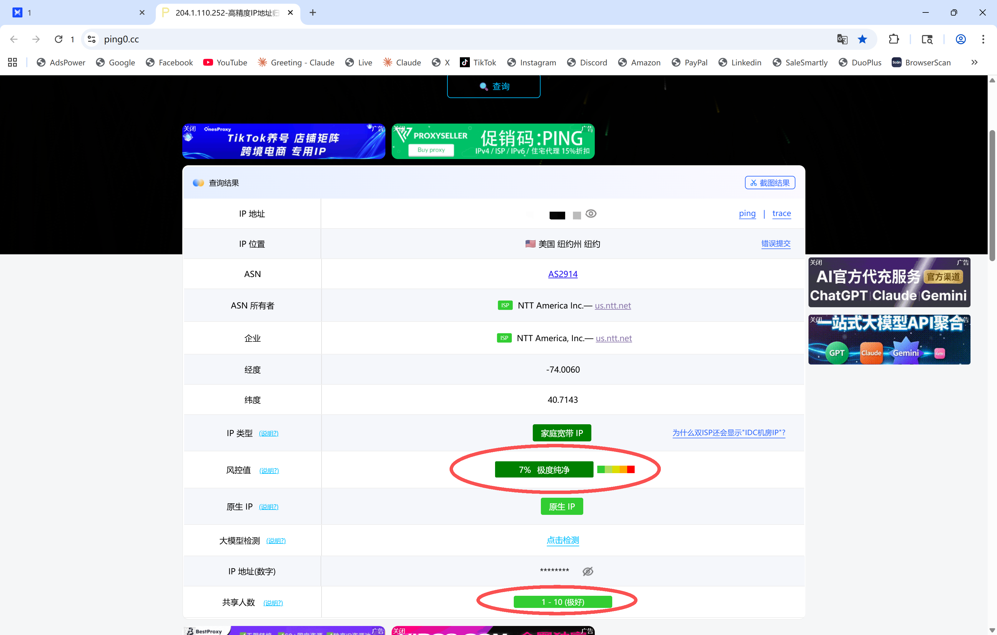 也可以在这个ping0页面再检测一下,地址https://www.ping0.cc